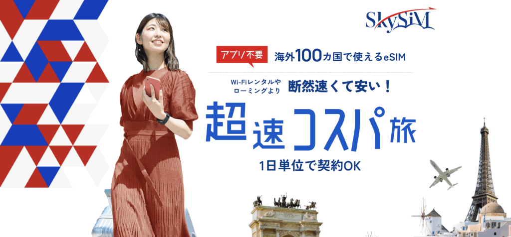 Sky eSiMはアプリ不要で120カ国で利用できるおすすめブランドです。